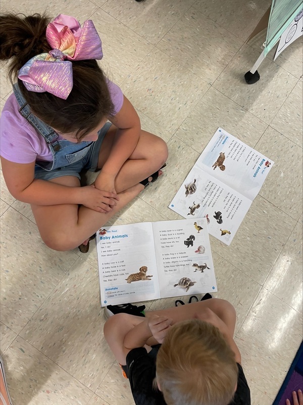 Students in Mrs. Bukowski's 1st Grade class discussed what they learned about baby animals with a partner.
